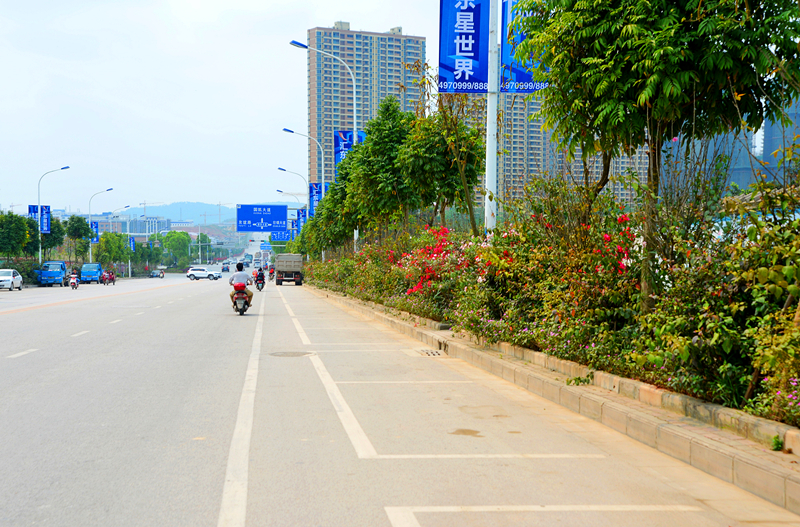 本項(xiàng)目位于金陽(yáng)路,于2014年12月開工,2015年1月完工,綠化面積約2700㎡,種植主要品種有:人面子、黃金香柳、夾竹桃、、硬枝黃蟬、紅繼木、三角梅等