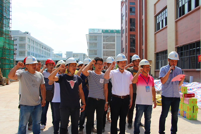當(dāng)天,驕陽似火。綠港集團黨委書記、董事長、總經(jīng)理龔國強莊重地給黨員們授予“黨員先鋒隊”紅旗,給青年突擊隊員們授予“青年突擊隊”紅旗,并提出了幾點要求:一是要緊緊圍繞項目建設(shè)開展突擊活動。全體黨員干部和青年同志要充分發(fā)揚不怕吃苦、勇于負(fù)重,敢打硬仗、能打硬仗的優(yōu)良傳統(tǒng),切實發(fā)揮“黨員先鋒隊”、“青年突擊隊”在“急、難、險、重”任務(wù)中的生力軍作用。二是要把項目建設(shè)與錘煉黨員意志相結(jié)合。黨員干部和青年同志們要充分發(fā)揮模范帶頭作用,深入項目一線,了解項目建設(shè)困難,想方設(shè)法協(xié)調(diào)解決。要在項目建設(shè)中增強本領(lǐng)、錘煉意志、增強黨性,更好的服務(wù)入?yún)^(qū)企業(yè)建設(shè)發(fā)展。三是要充分發(fā)揮“黨建帶團建”作用?!包h員先鋒隊”要引導(dǎo)和指導(dǎo)好“青年突擊隊”開展好項目建設(shè),黨員干部與青年同志們要相互關(guān)心,密切配合,充分發(fā)揮整體功能和團隊精神,確保瑞聲廠房項目能在6月25日完工交付9號廠房、7月25日完工交付3、13號廠房的任務(wù)目標(biāo)。