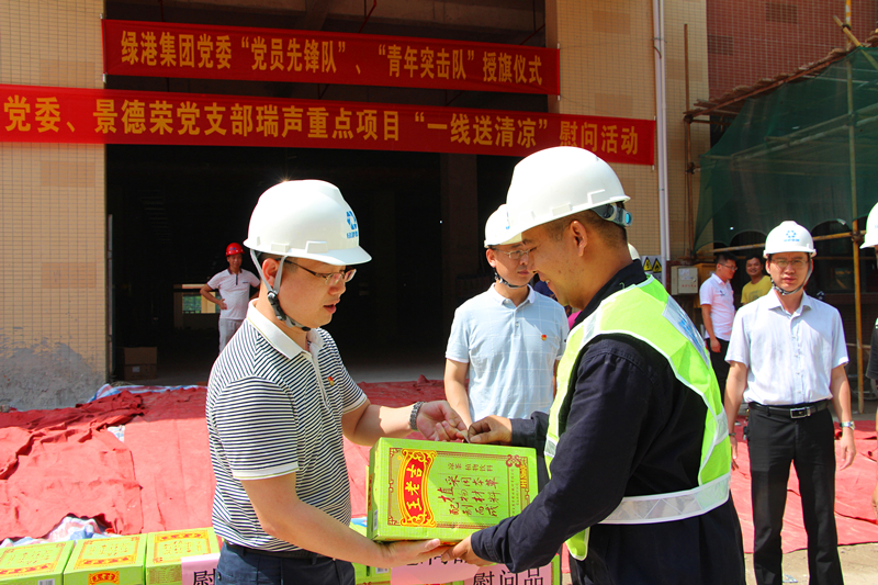 此次活動也是綠港集團黨委在今年開展“四個一線”爭先鋒、創(chuàng)建黨建示范品牌工作以來,在項目建設(shè)一線開展創(chuàng)建“黨員攻堅先鋒隊”活動的重要舉措之一?!八膫€一線”是綠港集團黨委圍繞經(jīng)開區(qū)黨工委加強基層黨建三年行動計劃,結(jié)合集團公司項目建設(shè)、企業(yè)服務(wù)、招商銷售、項目融資的四個任務(wù),以“抓黨建促發(fā)展,抓品牌促提升”為主題,組織號召廣大黨團員積極開展在項目一線創(chuàng)建“黨員攻堅先鋒隊”、在服務(wù)企業(yè)一線創(chuàng)建“服務(wù)示范標(biāo)兵(窗口)”、在招商銷售一線創(chuàng)建“一個黨員一面旗,我為綠港做代言”、在項目融資一線“爭做黨員領(lǐng)頭雁”的活動。活動開展以來,集團黨建真正實現(xiàn)了“走前頭、作表率”的目標(biāo),引導(dǎo)集團公司全體黨員干部轉(zhuǎn)變工作作風(fēng)、提高工作效能、強化服務(wù)意識,在促進綠港集團樹立國企黨建標(biāo)桿,不斷提升社會形象起到引領(lǐng)作用。授旗儀式結(jié)束后,綠港集團與會領(lǐng)導(dǎo)還給項目一線參建人員送上了王老吉、西瓜水果等清涼慰問品,鼓勵他們繼續(xù)發(fā)揚綠港鐵軍精神,急難險重顯身手,同時要注意防暑降溫、保重身體,更好地為項目建設(shè)做貢獻(xiàn)。(綠港集團 陽正輝、張彩秀/文、圖)