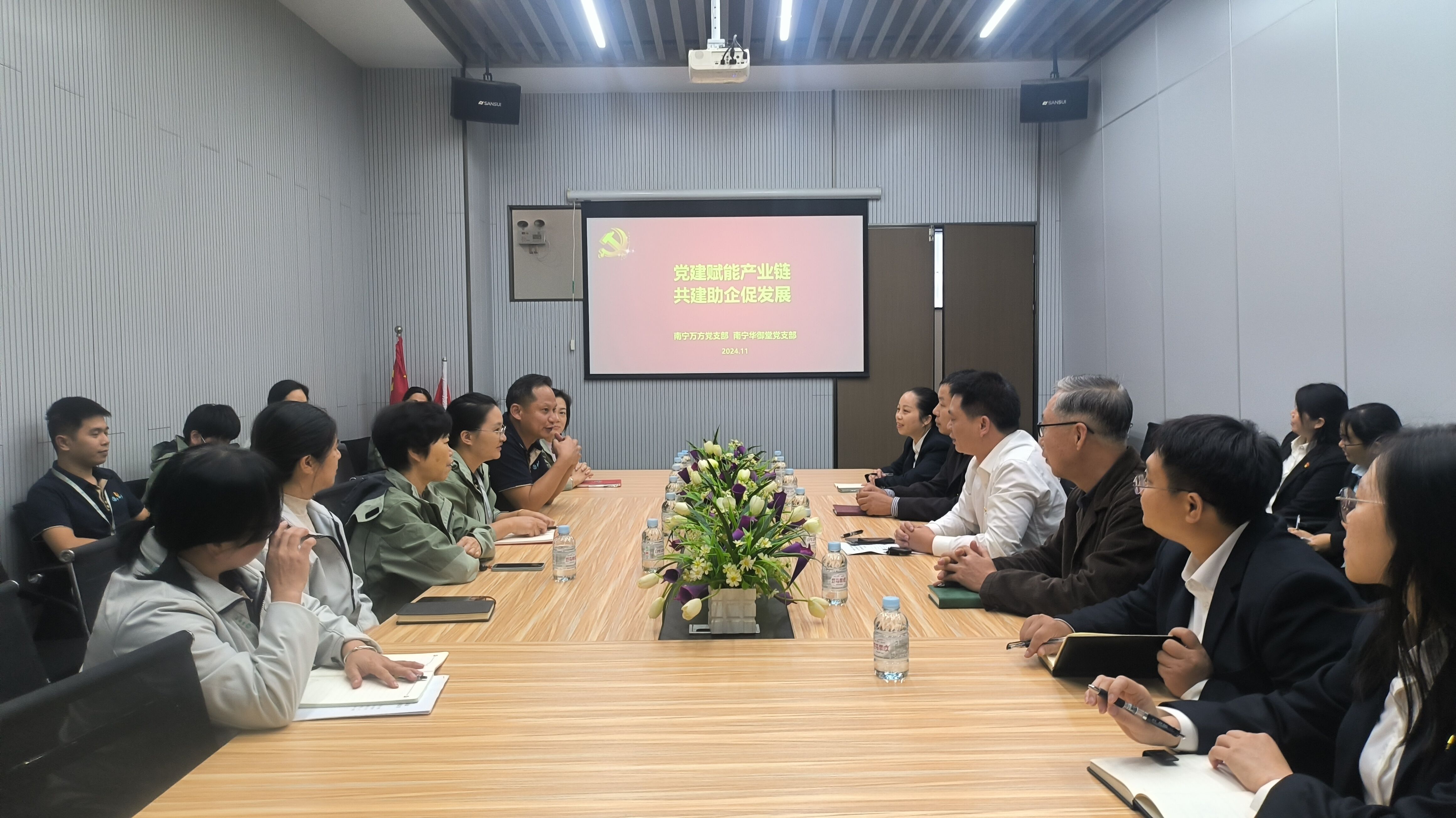 萬(wàn)方公司黨支部全體黨員來(lái)到位于金凱工業(yè)園的華御堂公司,首先參觀了華御堂公司的工作區(qū),了解公司基本經(jīng)營(yíng)情況。隨后雙方進(jìn)行了座談,就支部黨建工作、公司經(jīng)營(yíng)工作、服務(wù)訴求等方面展開交流。華御堂公司的黨員們高度肯定了萬(wàn)方公司所提供的優(yōu)質(zhì)服務(wù),并對(duì)安全培訓(xùn)、服務(wù)優(yōu)化等方面提出了中肯的建議。萬(wàn)方公司副總經(jīng)理覃富文表示,華御堂公司是生產(chǎn)經(jīng)營(yíng)企業(yè),萬(wàn)方公司是物業(yè)服務(wù)企業(yè),均是產(chǎn)業(yè)鏈中重要一環(huán),雙方進(jìn)行經(jīng)驗(yàn)交流、信息溝通及相互了解需求有助于促進(jìn)公司的高質(zhì)量發(fā)展。雙方就今后進(jìn)行客戶信息、資源共享達(dá)成共識(shí),決定建立常態(tài)化的溝通機(jī)制,以相對(duì)固定的形式開展支部共建聯(lián)建活動(dòng),共同致力于提高物業(yè)服務(wù)水平,推動(dòng)企業(yè)發(fā)展。最后雙方進(jìn)行了氣排球友誼賽,兩個(gè)黨支部的黨員、入黨積極分子熱情參與、激烈角逐,充分體現(xiàn)出雙方團(tuán)結(jié)拼搏、奮勇?tīng)?zhēng)先的精神風(fēng)貌。雙方通過(guò)比賽加深了彼此間的了解和友誼,為雙方繼續(xù)深化黨建交流、加強(qiáng)業(yè)務(wù)合作奠定了良好基礎(chǔ)。